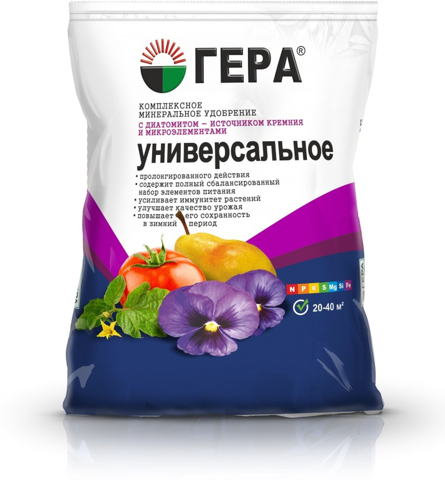Агрохимикат «Гера Универсальное» - смешанное минеральное удобрение для основного внесения и подкормки в период вегетации овощных, плодово-ягодных, цветочно-декоративных культур, всех видов комнатных и декоративных садово-парковых растений в открытом и защищенном грунте.
