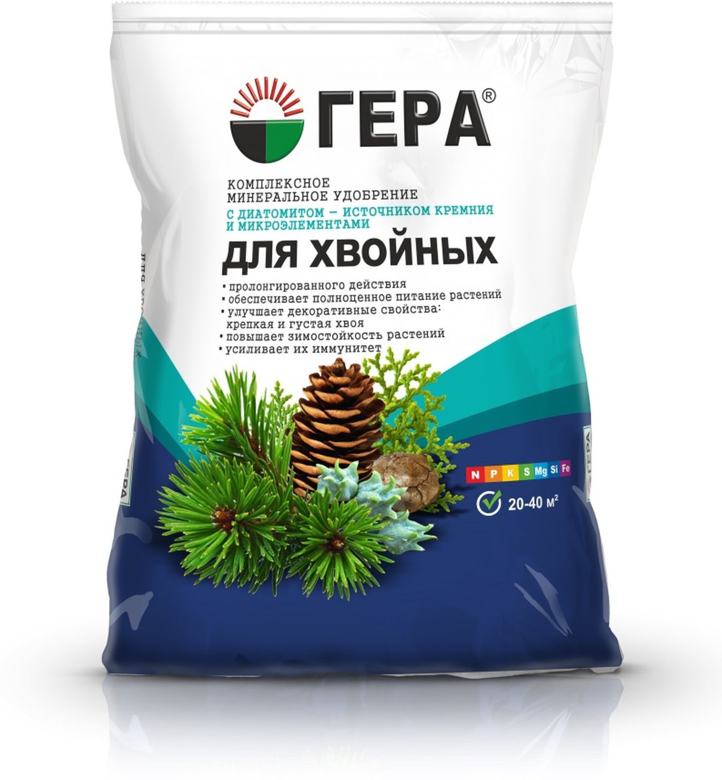 Агрохимикат «Гера Хвойное» – смешанное удобрение для основного внесения и подкормки вечнозеленых хвойных деревьев и кустарников, таких как можжевельник, туя, кедр, ель, сосна, тис, лиственница, кипарисовик, пихта и других вечнозеленых декоративных культур.